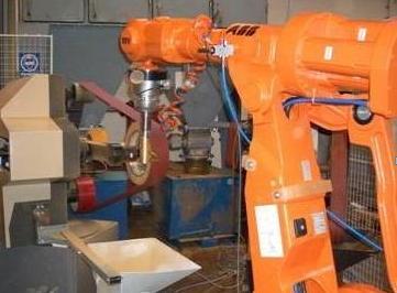 帶有測力傳感器的機器人磨削系統。